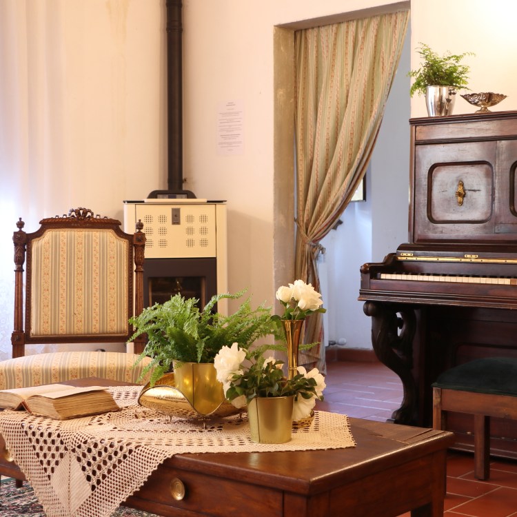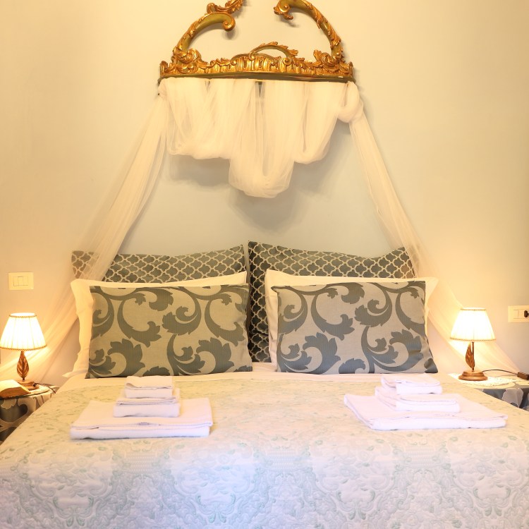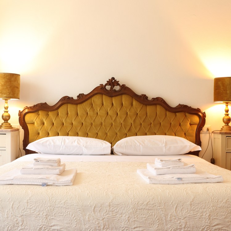 Grande salotto con vista su parco storico, cucina attrezzata, due bagni, camera con letto matrimoniale e sala da trucco . E’ l’appartamento padronale della villa: i soffitti affrescati e la vetrata storica caratterizzano questa particolarissima suite. Ospita due persone.