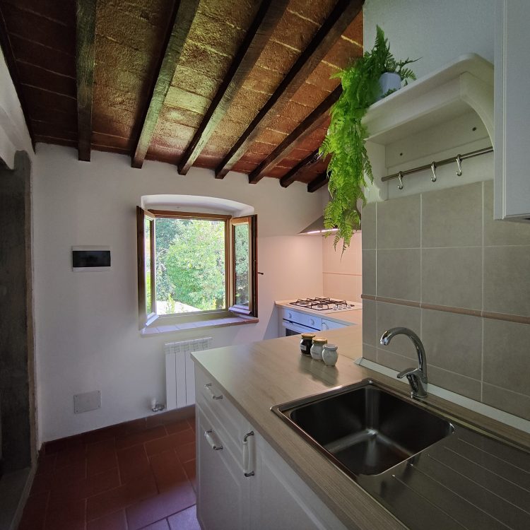 Situato al primo piano, vi si accede dall’ingresso della corte interna. Piccolo cucinotto, grande caminetto, camera matrimoniale, bagno. Semplice e accogliente. Ospita due persone.